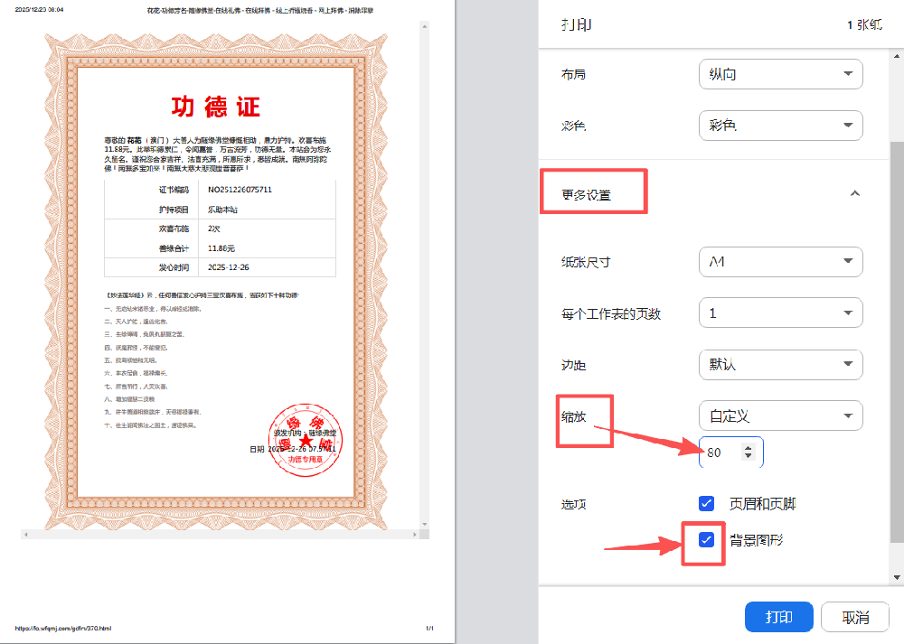 3、在功德芳名栏目里,找到缘主自己的证书,点击进去。